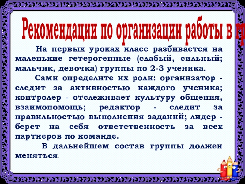 группа подбирается с учетом того, чтобы с максимальной эффективностью для коллектива могли реализоваться учебные возможности каждого члена группы.