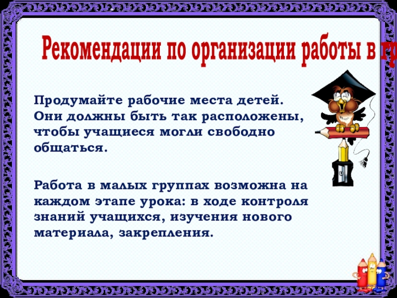 Работа в малых группах возможна на каждом этапе урока: в ходе контроля знаний учащихся, изучения нового материала, закрепления.