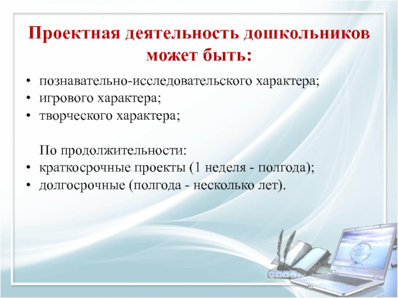 Слайд 12Проектная деятельность дошкольников может быть: