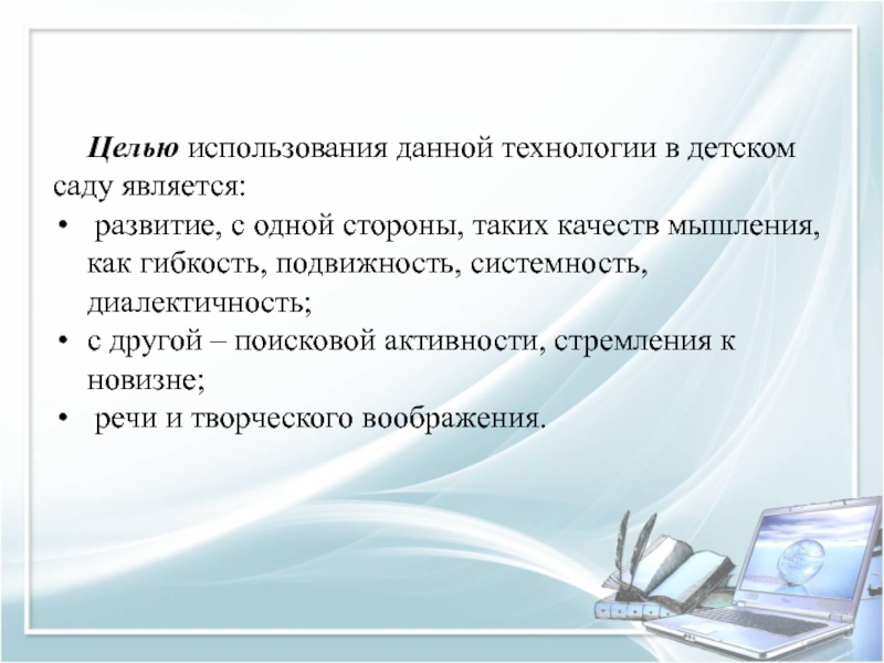 Слайд 14Целью использования данной технологии в детском саду является: