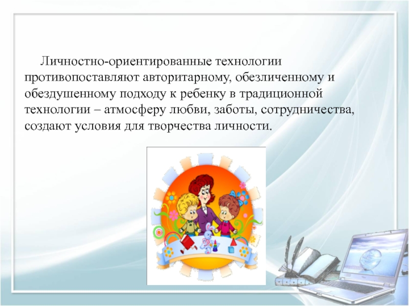 Личностно-ориентированные технологии противопоставляют авторитарному, обезличенному и обездушенному подходу к ребенку в