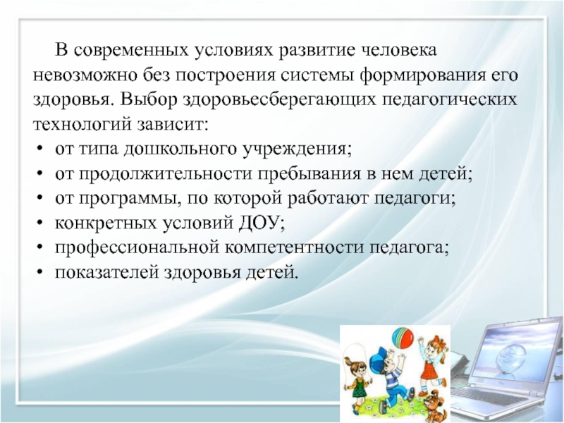 здоровья. Выбор здоровьесберегающих педагогических технологий зависит: