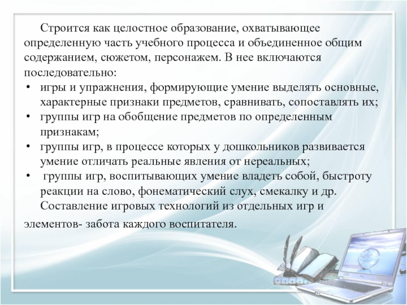 Игровые технологии тесно связаны со всеми сторонами воспитательной и образовательной