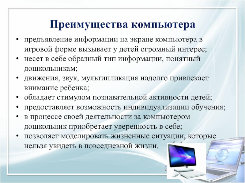 в процессе своей деятельности за компьютером дошкольник приобретает уверенность в себе;