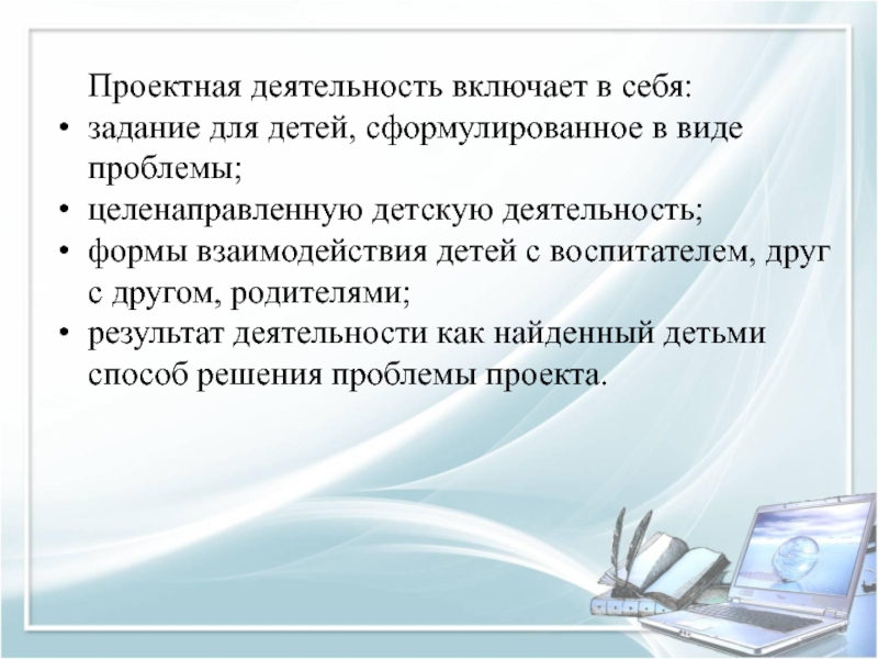 Слайд 11Проектная деятельность включает в себя: