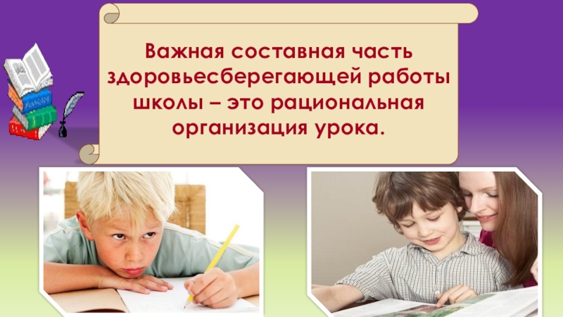 Слайд 25Важная составная часть здоровьесберегающей работы школы – это рациональная организация урока.