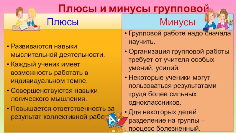 Слайд 20 Плюсы и минусы групповой