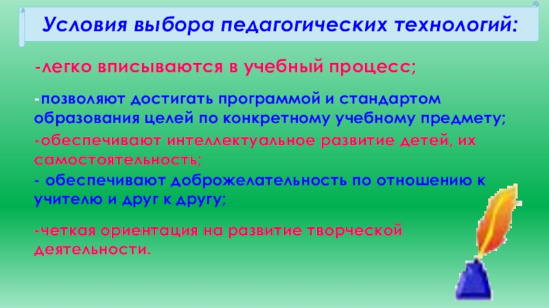 Условия выбора педагогических технологий: