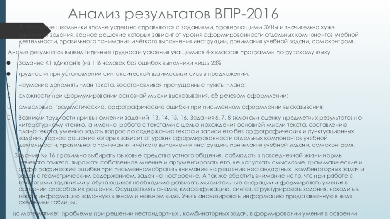 Слайд 11Результаты ВПР-2016. Русский язык.