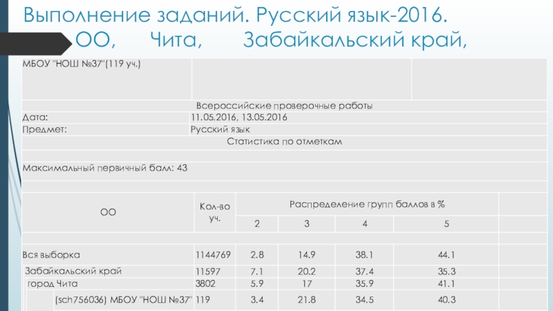 Слайд 12Выполнение заданий. Русский язык-2016.