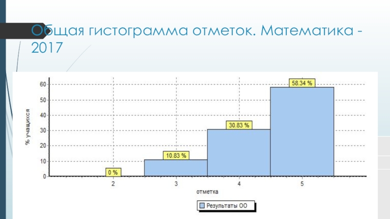 Слайд 30Общая гистограмма отметок. Математика - 2017