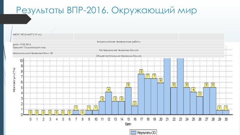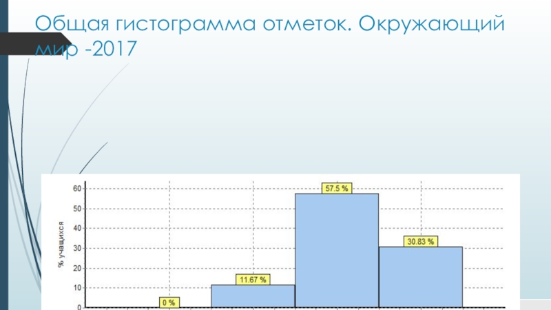 Слайд 33Общая гистограмма отметок. Окружающий мир -2017