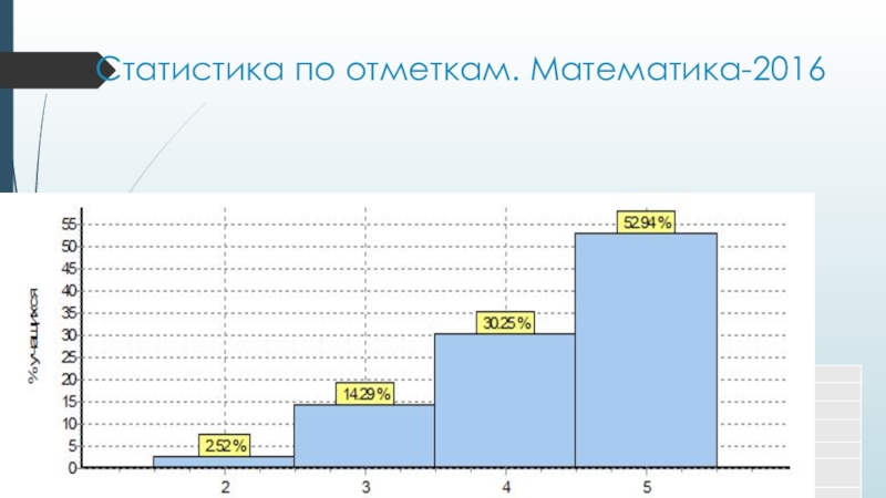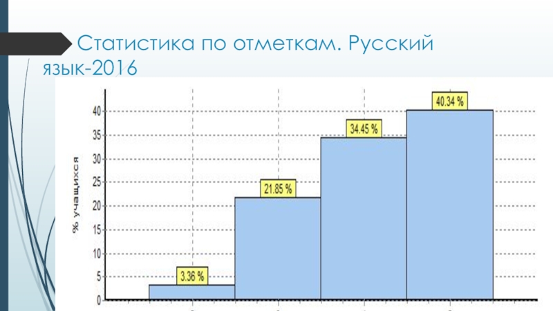 Слайд 13 Статистика по отметкам. Русский язык-2016