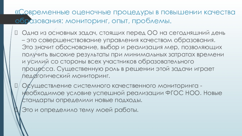 Слайд 4«Современные оценочные процедуры в повышении качества образования: мониторинг, опыт, проблемы.