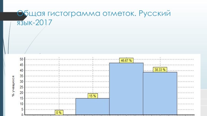 Слайд 27Общая гистограмма отметок. Русский язык-2017