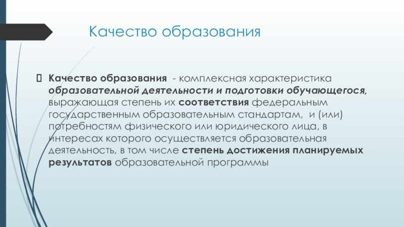 выражающая степень их соответствия федеральным государственным образовательным стандартам, и (или) потребностям физического или юридического лица, в интересах которого осуществляется образовательная деятельность, в том числе степень достижения планируемых результатов образовательной программы