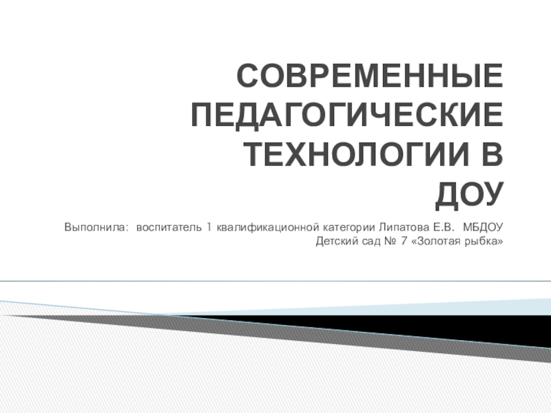 Выполнила: воспитатель 1 квалификационной категории Липатова Е.В. МБДОУ Детский сад № 7 «Золотая рыбка»