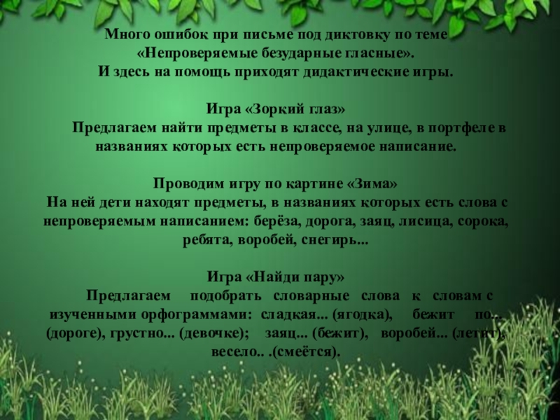 «Непроверяемые безударные гласные».