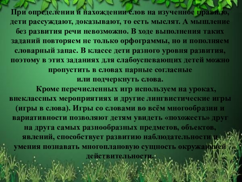 Слайд 24При определении и нахождении слов на изученное правило, дети рассуждают, доказывают,
