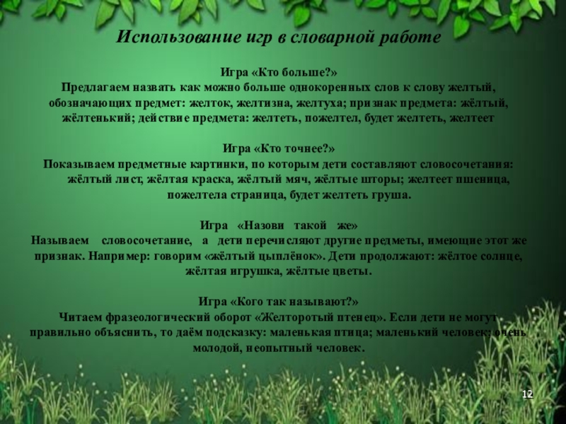 Слайд 12Использование игр в словарной работе