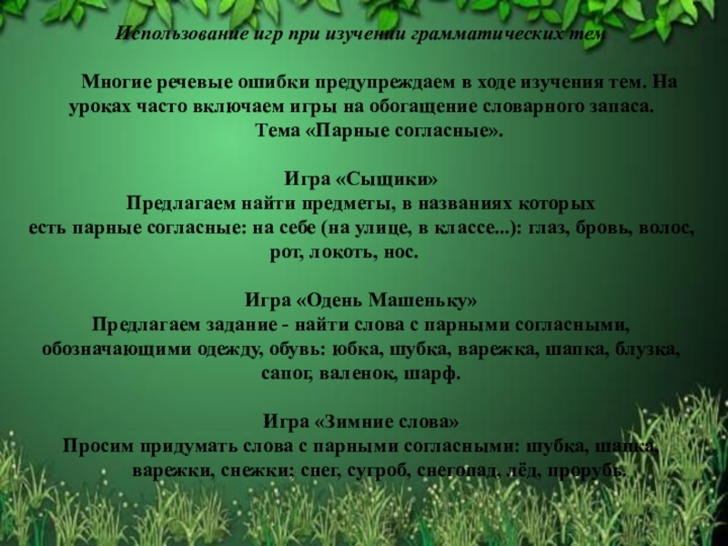 Слайд 23Использование игр при изучении грамматических тем