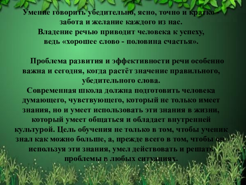 Проблема развития и эффективности речи особенно важна и сегодня, когда растёт значение правильного, убедительного слова.