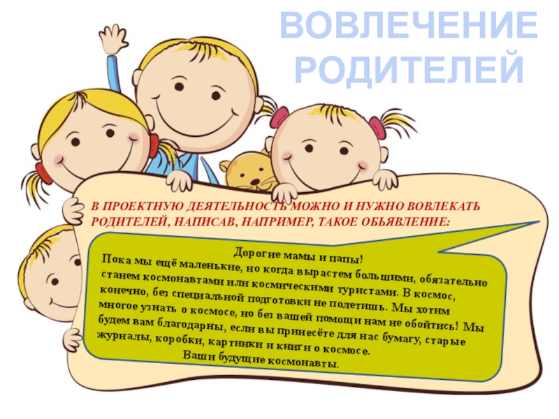И НУЖНО ВОВЛЕКАТЬ РОДИТЕЛЕЙ, НАПИСАВ, НАПРИМЕР, ТАКОЕ ОБЬЯВЛЕНИЕ: