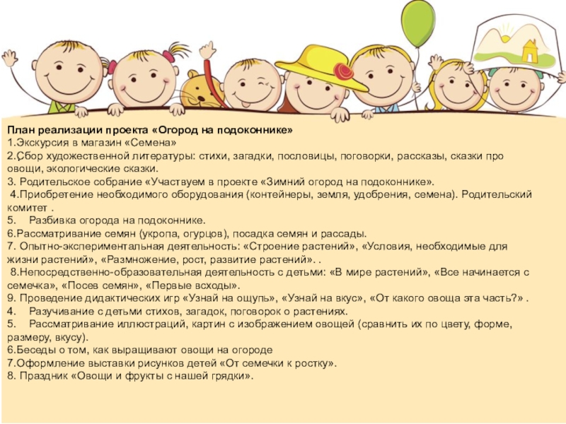 Проектная идея. Создать в группе детского сада огород на подоконнике.