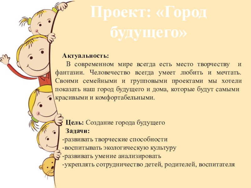 - Творчески подходить к реализации проекта; ориентировать детей на использование накопленных наблюдений, знаний, впечатлений.