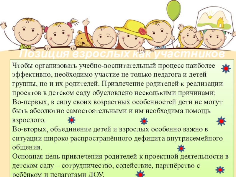 необходимо участие не только педагога и детей группы, но и их родителей. Привлечение родителей к реализации проектов в детском саду обусловлено несколькими причинами: