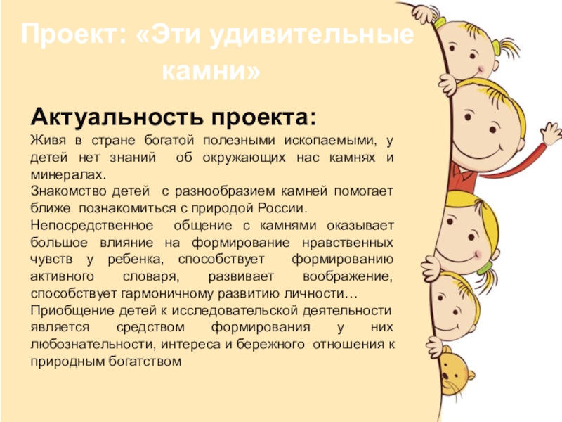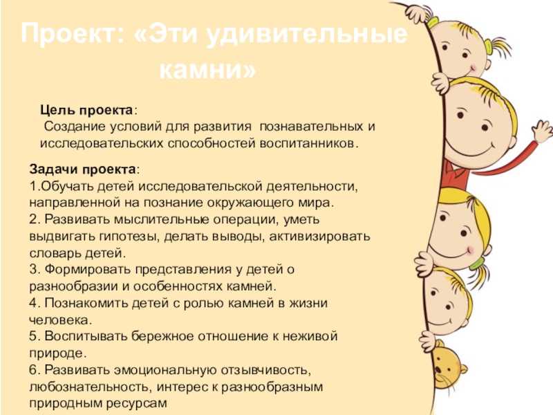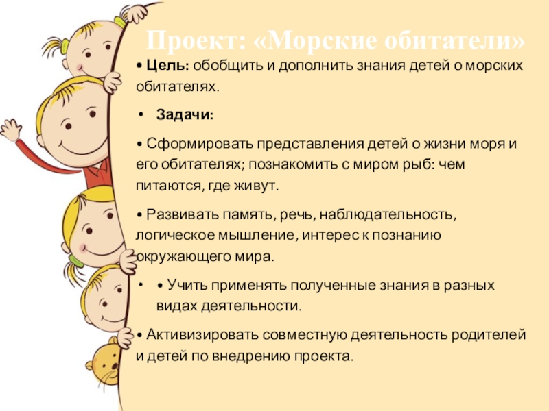 - Заинтересовать каждого ребенка тематикой проекта, поддерживать его любознательность и устойчивый интерес к проблеме.