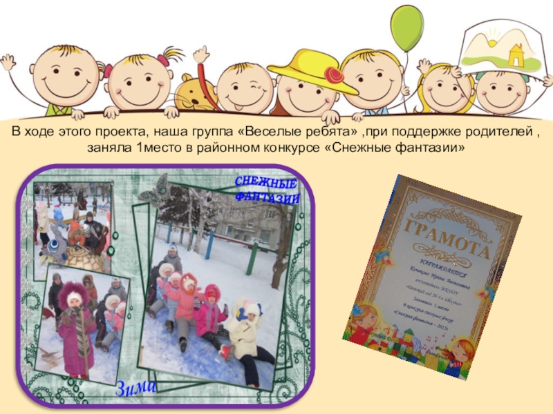 родителей ,заняла 1место в районном конкурсе «Снежные фантазии»