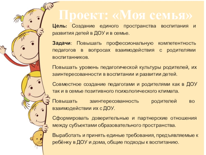 Основная цель привлечения родителей к проектной деятельности в детском саду – сотрудничество, содействие, партнёрство с ребёнком и педагогами ДОУ.