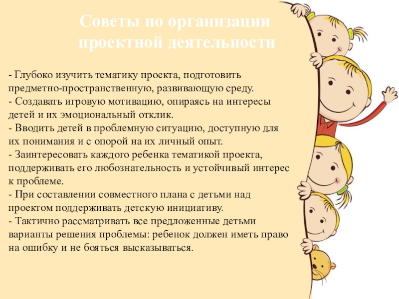 В ходе работы над проектом создавать атмосферу сотворчества с ребенком, используя индивидуальный подход.