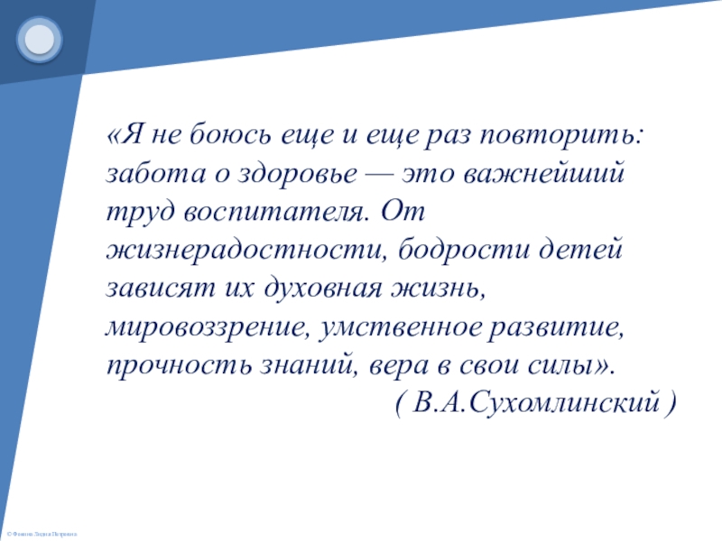 Слайд 2«Я не боюсь еще и еще раз повторить: забота о здоровье