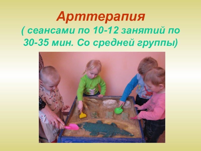 Слайд 25Арттерапия ( сеансами по 10-12 занятий по 30-35 мин. Со средней группы)