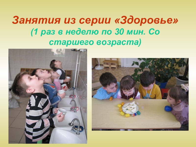 Слайд 21Занятия из серии «Здоровье» (1 раз в неделю по 30 мин. Со