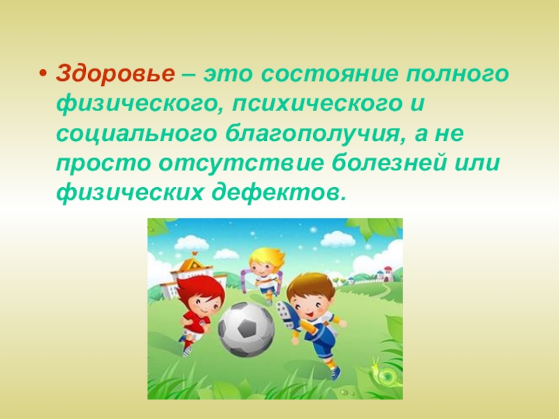 Здоровье – это состояние полного физического, психического и социального благополучия, а не просто отсутствие болезней или физических