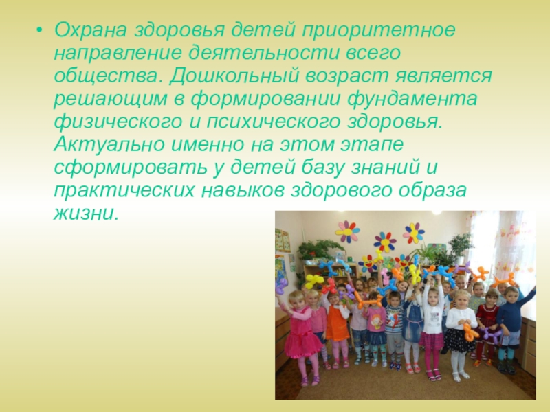 Охрана здоровья детей приоритетное направление деятельности всего общества. Дошкольный возраст является