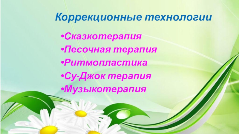 Коррекционные технологииСказкотерапияПесочная терапияРитмопластикаСу-Джок терапияМузыкотерапия