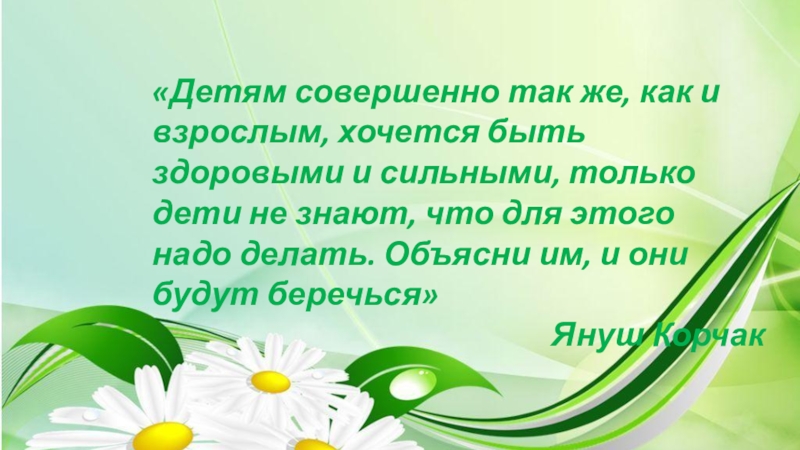 «Детям совершенно так же, как ивзрослым, хочется бытьздоровыми и сильными, толькодети не знают, что для этогонадо делать. Объясни им, и онибудут беречься»