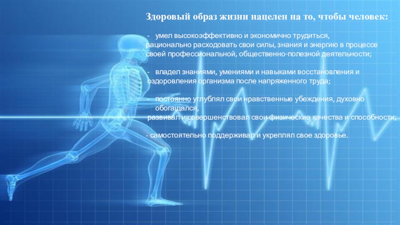 Эффективность здорового образа жизни для данного человека можно определить по ряду биосоциальных критериев, включающих: