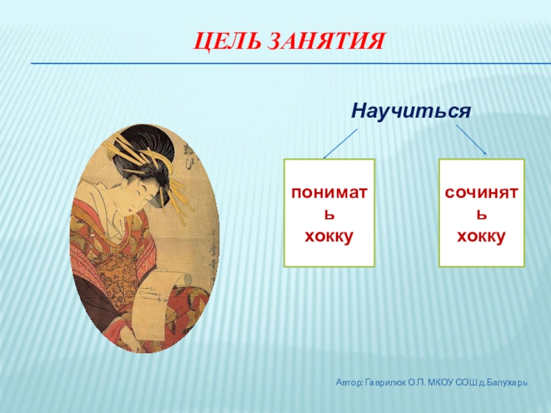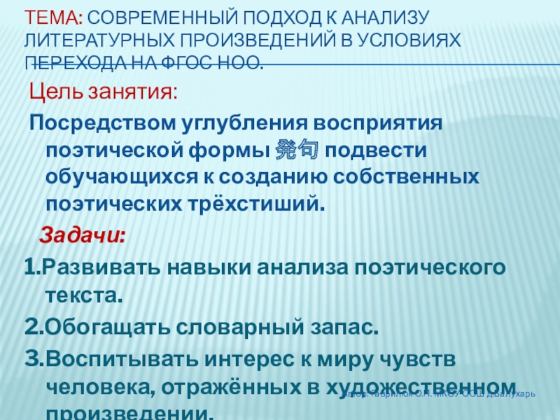 Посредством углубления восприятия поэтической формы 発句 подвести обучающихся к созданию собственных поэтических трёхстиший.
