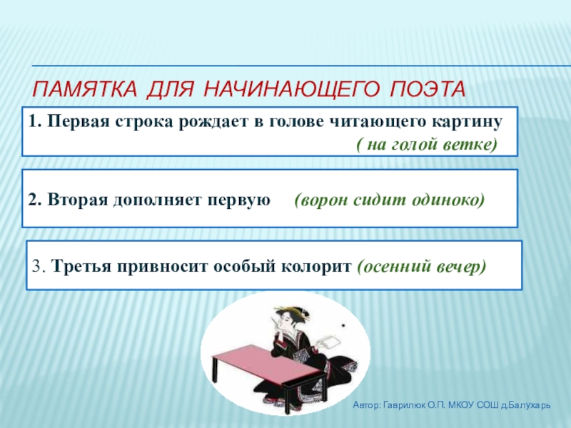 Автор: Гаврилюк О.П. МКОУ СОШ д.Балухарь