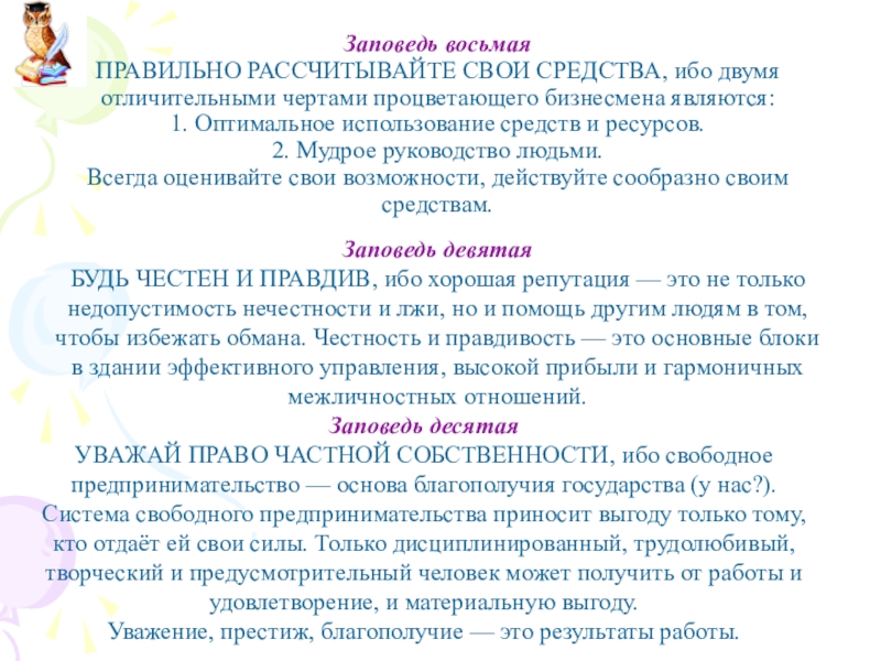 УВАЖАЙ ПРАВО ЧАСТНОЙ СОБСТВЕННОСТИ, ибо свободное предпринимательство — основа благополучия государства (у нас?).