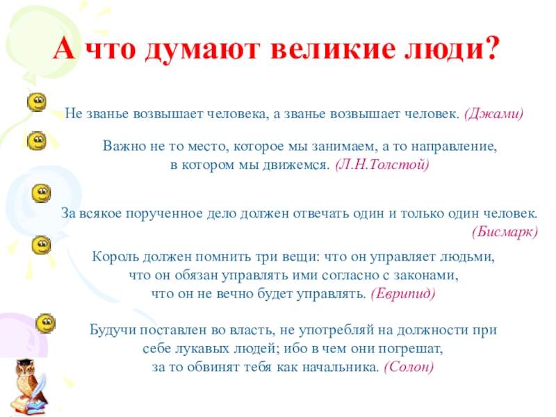 Не званье возвышает человека, а званье возвышает человек. (Джами)