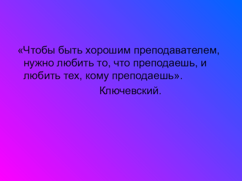 «Чтобы быть хорошим преподавателем, нужно любить то, что преподаешь, и любить тех, кому преподаешь».							Ключевский.