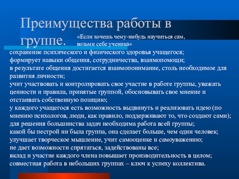совместная работа в небольших группах – ключ к успеху коллектива.