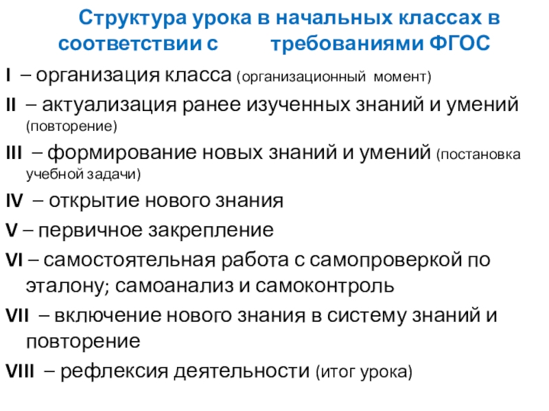 VI – самостоятельная работа с самопроверкой по эталону; самоанализ и самоконтроль