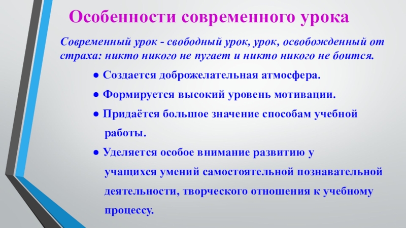 Современный урок - свободный урок, урок, освобожденный от страха: